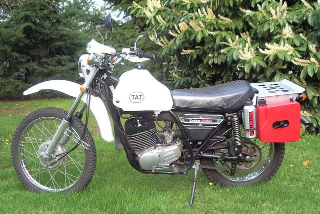 Spent a good portion of yesterday taking a relatively plain vanilla green 1974 DT360 (Motoguy's) and outfitting it with new fenders, tank, rack and handguards to get it ready for departure in less than two weeks. Actually we will be leaving the Northwest in 12 days! Woooo Hoooo!